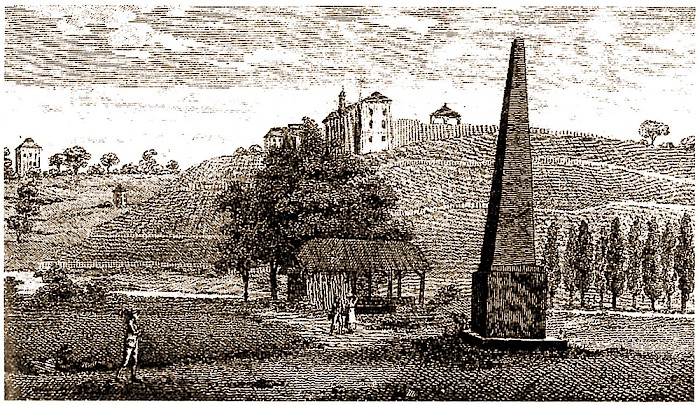 Bild oben: Der Obelisk vor dem Amalienberg, Stich um 1800; in: Kurt Andermann, "Anton Rindenschwender 1725–1803. Wirtschaftspionier im Nordschwarzwald", in: Badische Heimat. 83, 4, 2003, S. 627–635: S. 631.
